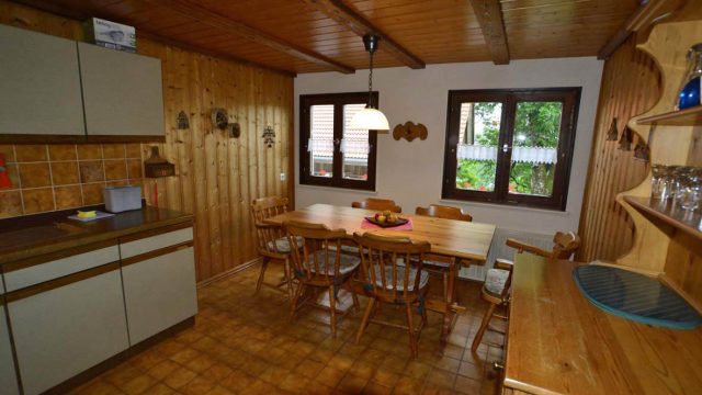 Ein großer Esstisch mit Stühlen lädt unsere Gäste dazu ein, gemeinsam Mahlzeiten einzunehmen und gesellige Abende zu verbringen. Der Blick in die Berge und die Weiten des Allgäus schafft eine beruhigende Atmosphäre.